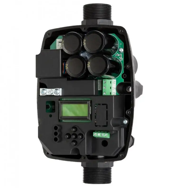 - Керує запуском і зупинкою традиційного електронасоса (наземного, вертикального та заглибного), регулюючи оберти двигуна залежно від забору води із системи. Гідравлічний удар зменшується, а пусковий струм під час запуску усувається.